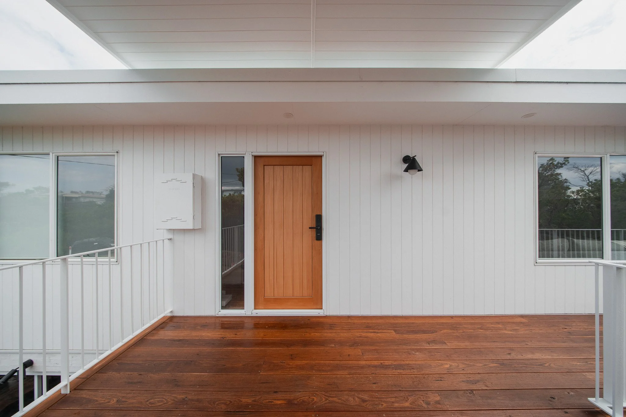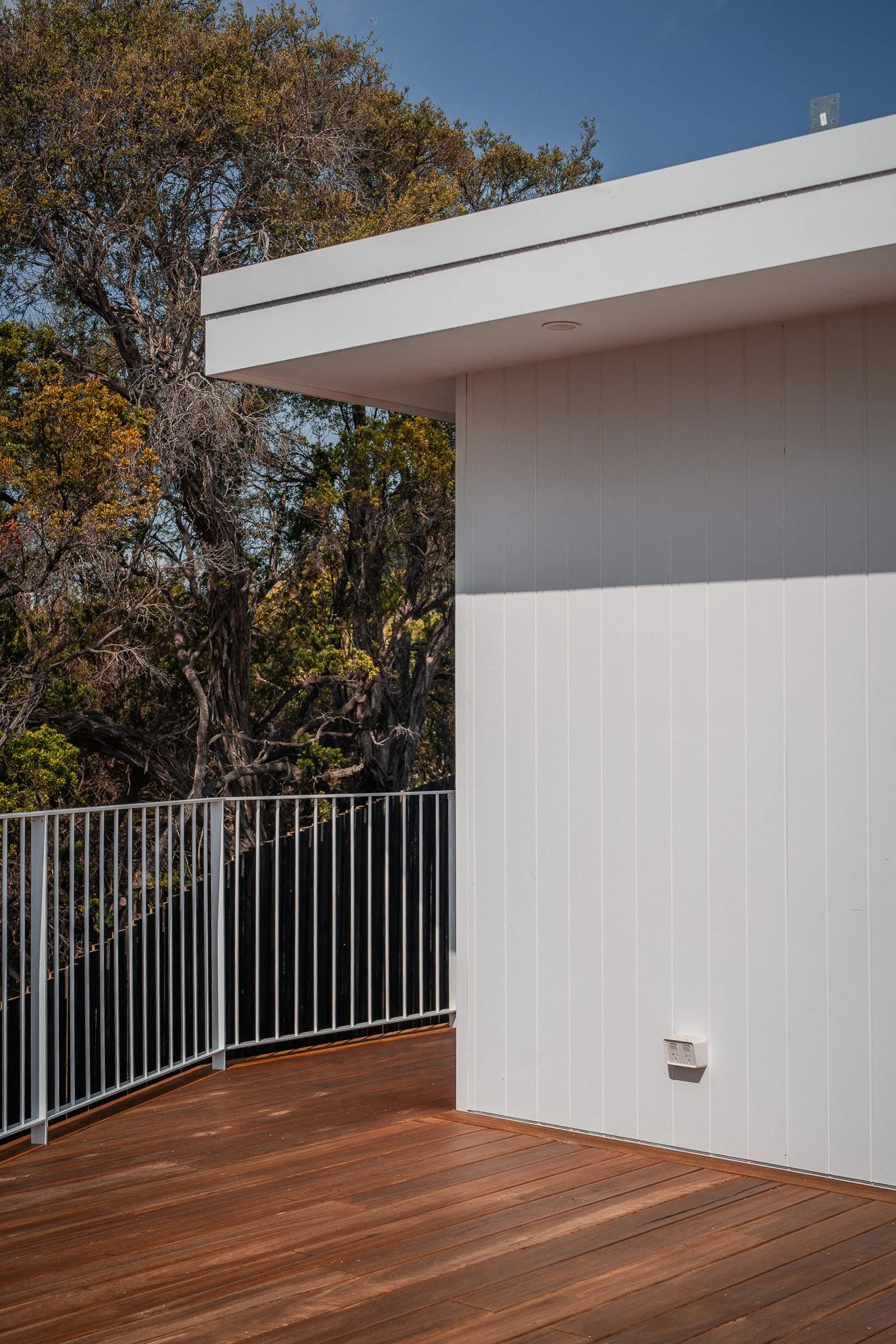 The balustrade features a concealed baseplate detail, with all fixings hidden beneath the decking boards, delivering a seamless, clean architectural finish designed to withstand the elements. We have also completed a full re-roof and re-clad of the home, along with extensive internal works, completely transforming the property from the ground up.