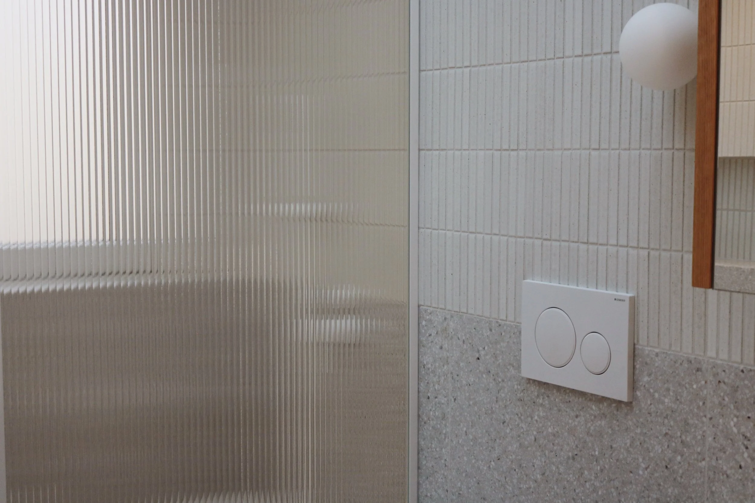 The bathroom features real terrazzo tiles and high-quality fixtures, all installed with precision to ensure a flawless finish. The result is a stylish, practical space that combines modern elegance with everyday functionality
